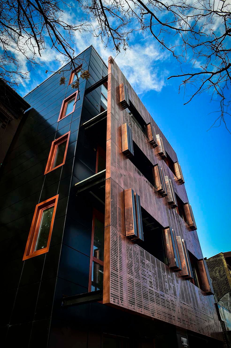 Aperture 538 is a five-story boutique condominium located in the Clinton Hill neighborhood. The building features a very unique façade and with an operable Copper Screen Facade. The moving Copper Shuters on front façade give this building an intriguing design. MGR Restoration assisted the project from its initial idea to its final, functioning placement.
